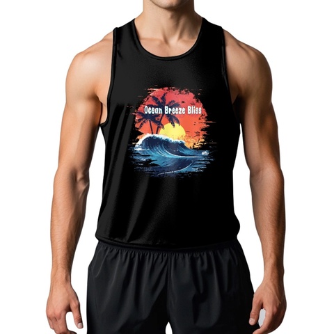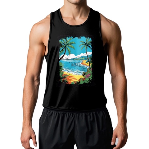 จัดส่งฟรีในสหรัฐอเมริกาเสื้อกั๊กลำลองของผู้ชาย MOQ1ชายหาดต้นปาล์มเสื้อยืดแขนกุดเสื้อกล้ามออกกำลังกายยืดกล้ามเนื้อ