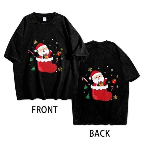 เสื้อยืดคอกลมแขนสั้นทำในสหรัฐอเมริกาจัดส่งฟรี MOQ-1Unisex คู่ใหญ่พิเศษคริสมาสต์ซานตาคลอสองค์ประกอบ2D