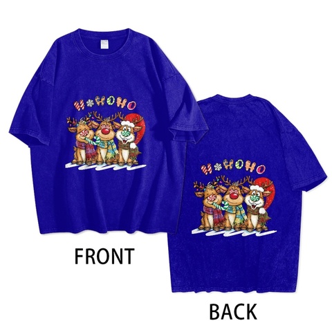 เสื้อยืดคอกลมแขนสั้นสำหรับผู้ชายผลิตในสหรัฐอเมริกาจัดส่งฟรี MOQ-1 2025คริสต์มาสเรนเดียร์2D โลโก้เสื้อยืดฮิปฮอปขนาดใหญ่พิเศษ