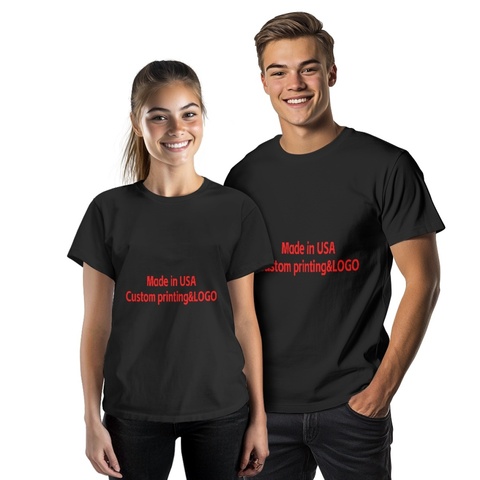 เสื้อยืดคู่พิมพ์ลายแฟชั่นสำหรับทุกเพศเสื้อคอกลมแขนสั้นเสื้อ100% ผ้าฝ้ายฟอกสี MOQ-1จัดส่งฟรีจาก USA